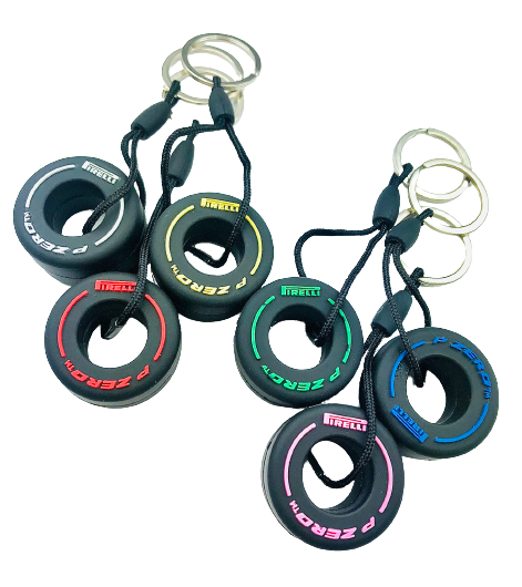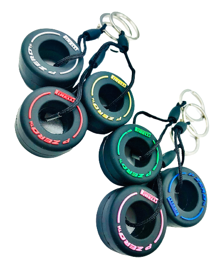 6 RODZAJÓW BRELOKÓW PRZEDSTAWIAJĄCYCH ZNANE WSZYSTKIM FANOM SPORTÓW WYŚCIGOWYCH OPONY WYKORZYSTYWANE M.IN W BOLIDACH