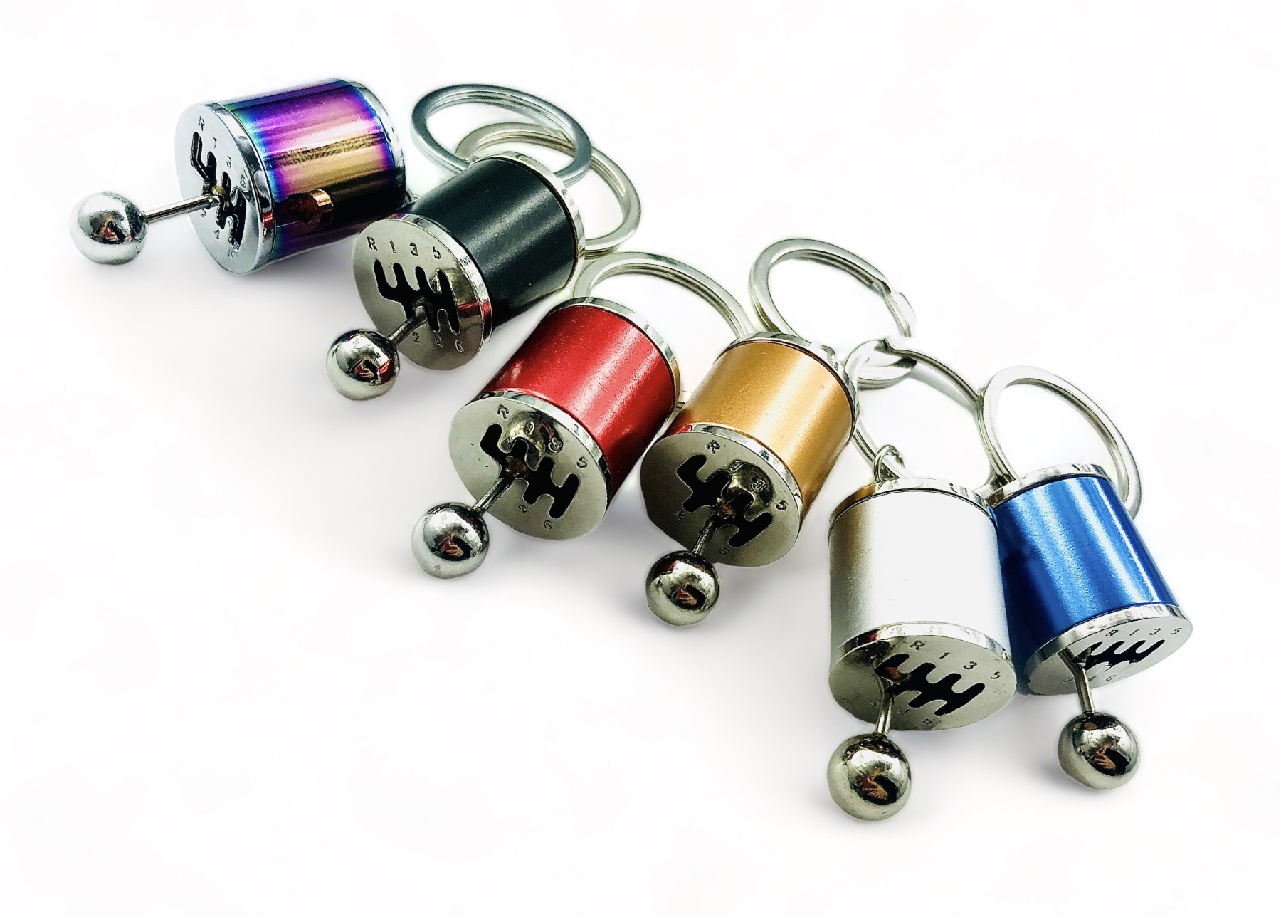 6 RODZAJÓW BRELOKÓW PRZEDSTAWIAJĄCYCH RÓŻNOKOLOROWE SKRZYNIE BIEGÓW ZAWIERAJĄCE RUCHOMĄ GAŁKE DO ZMIANY WSZYSTKICH BIEGÓW. IDEALNE NA PREZENT!