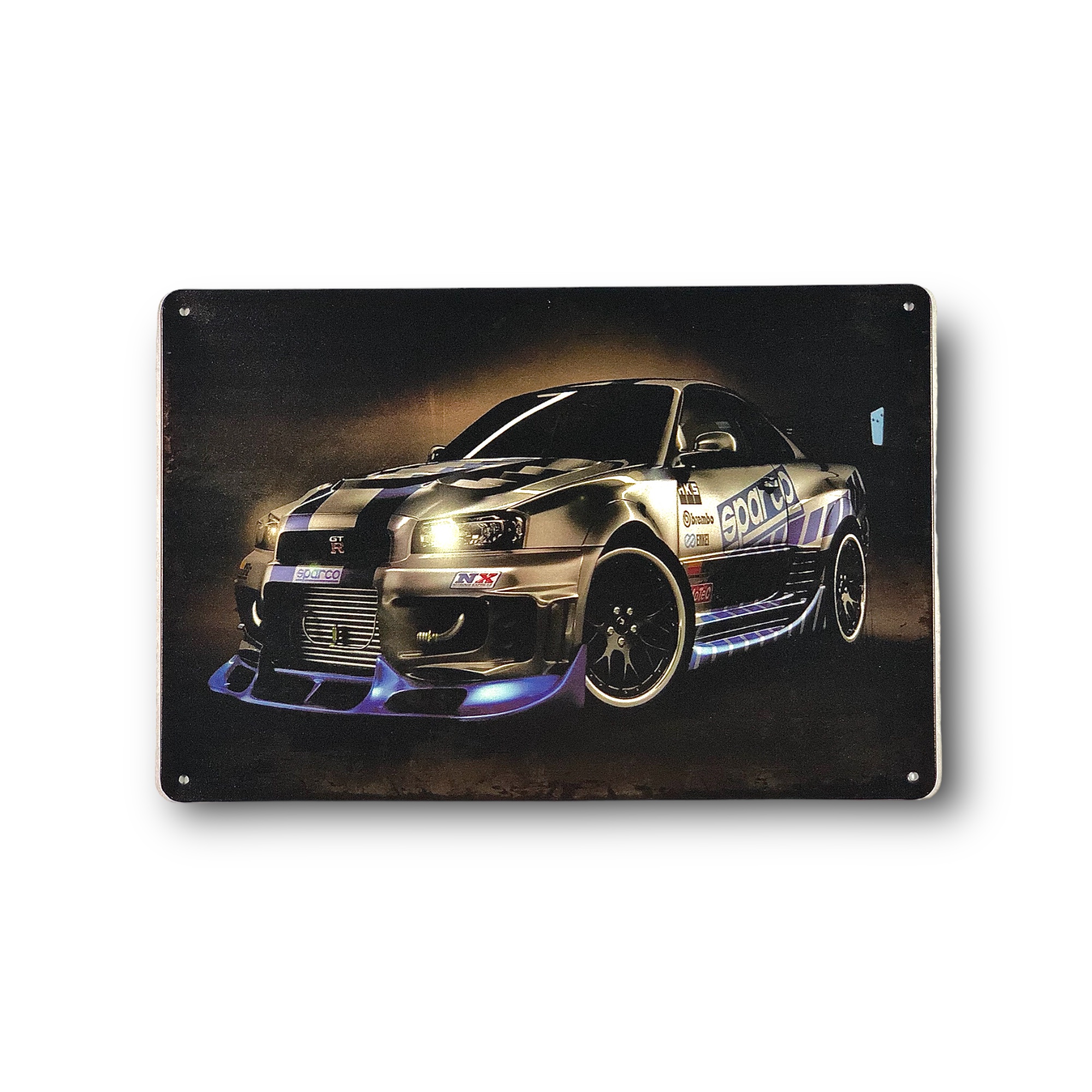 > Products > DOM I GARAŻ > BLACHY ŚCIENNE > DEKORACYJNA BLACHA / TABLICA ŚCIENNA – BRIAN O’CONNER NISSAN SKYLINE R34 | SZYBCY I WŚCIEKLI