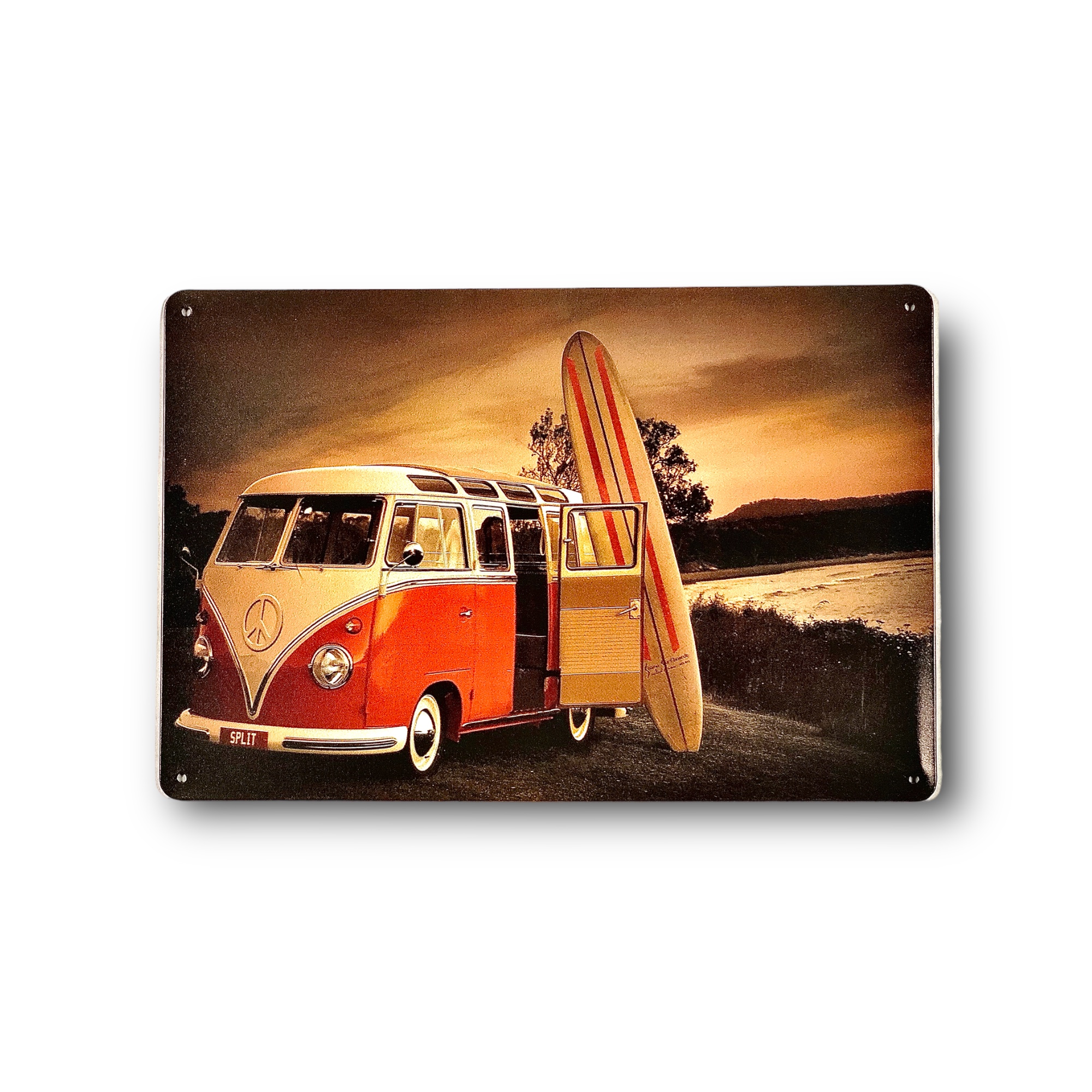 METALOWA TABLICZKA ŚCIENNA W STYLU RETRO, Z CZTEROMA OTWORAMI PRZY KAŻDYM ROGU, KTÓRE UMOŻLIWIAJĄ STABILNE PRZYTWIERDZENIE BLACHY DO ŚCIANY. POKRYTA...