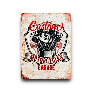 KUBEK W STYLU PRL, WYKONANY W CAŁOŚCI Z METALU Z MALUNKIEM CZERWONEJ MOTORYNKI