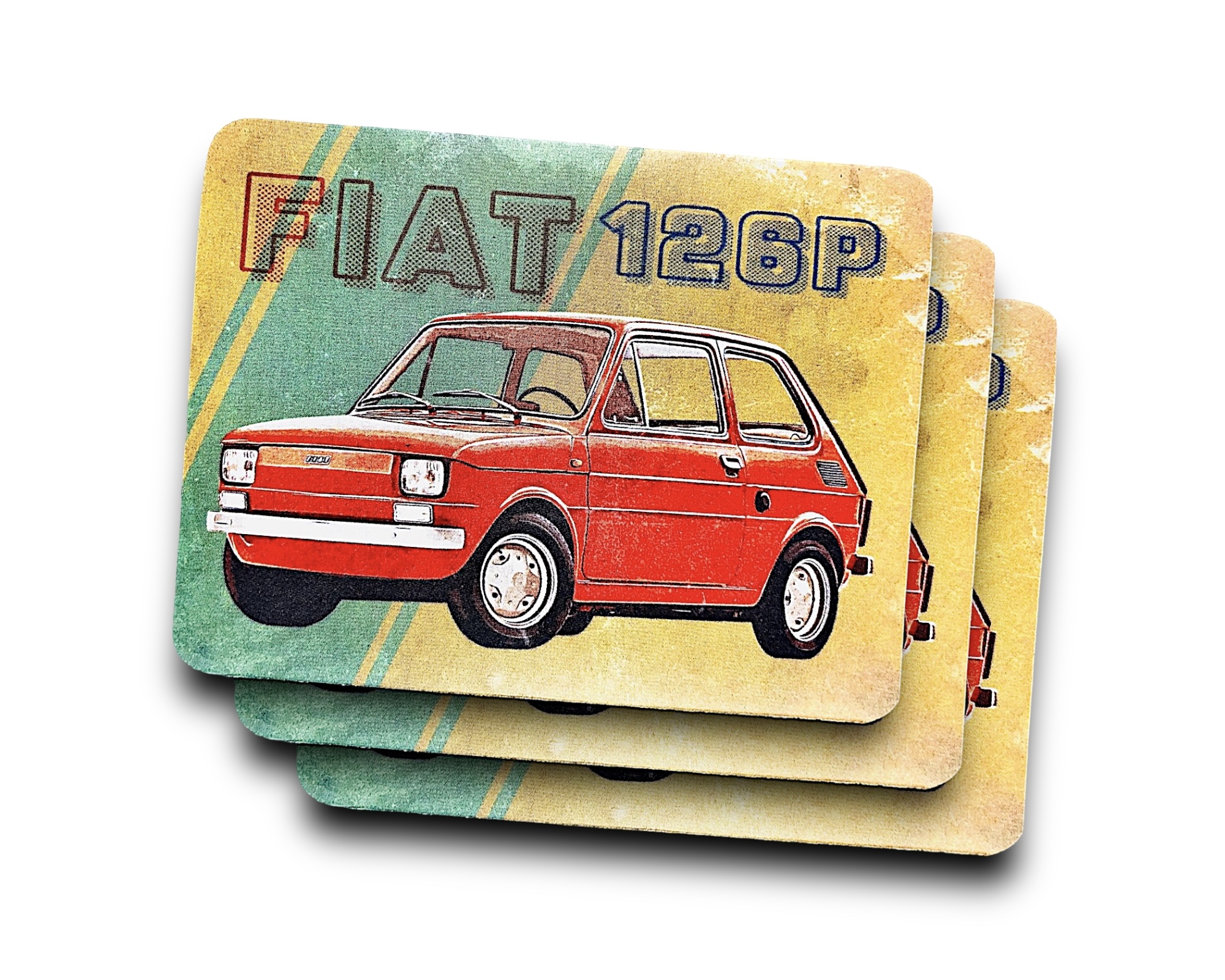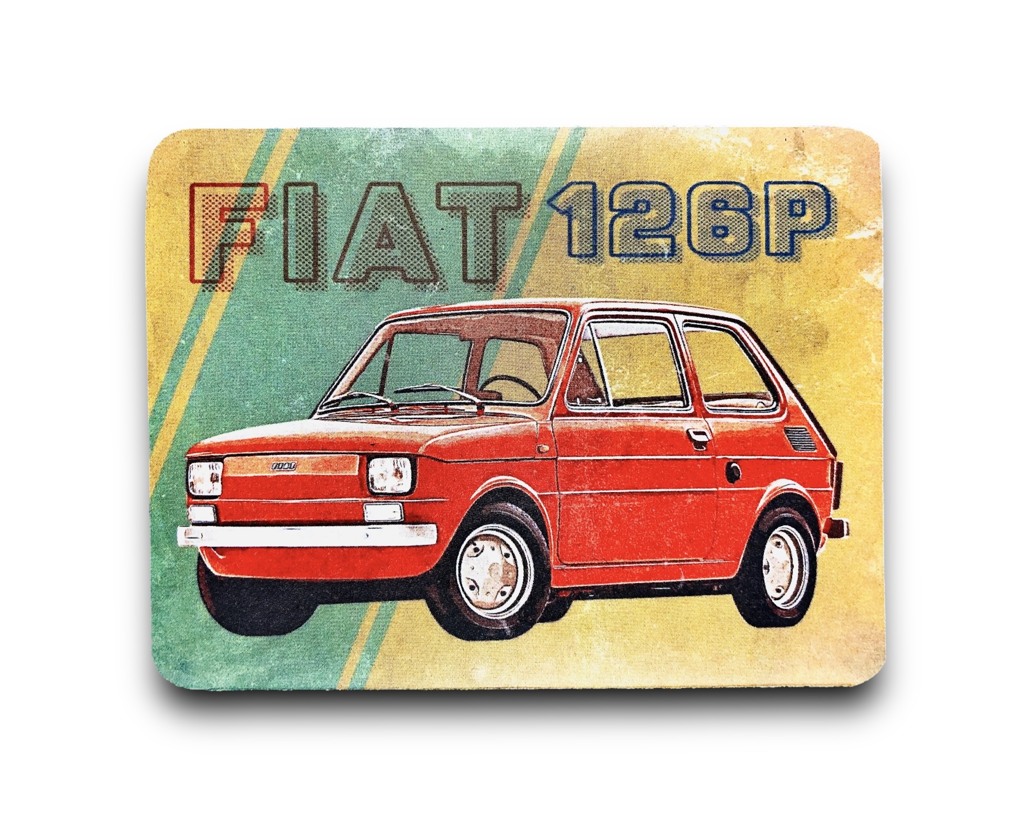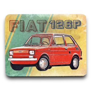 KUBEK W STYLU PRL, WYKONANY W CAŁOŚCI Z METALU Z MALUNKIEM DUŻEGO FIATA 125P