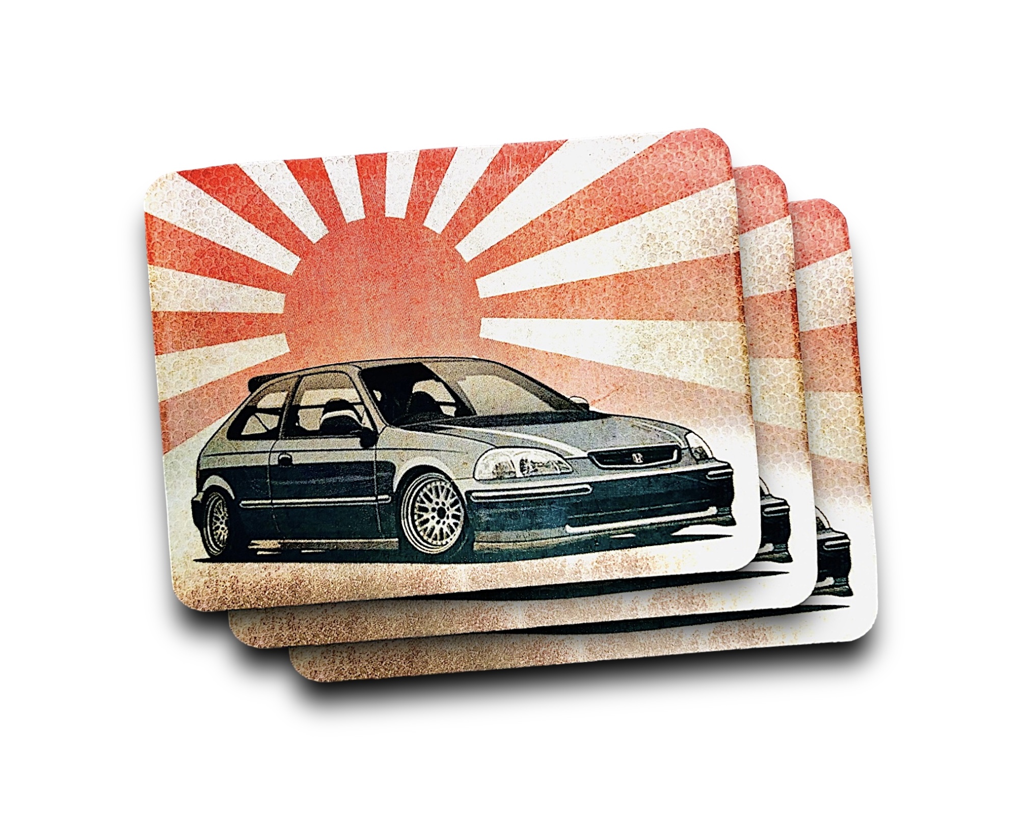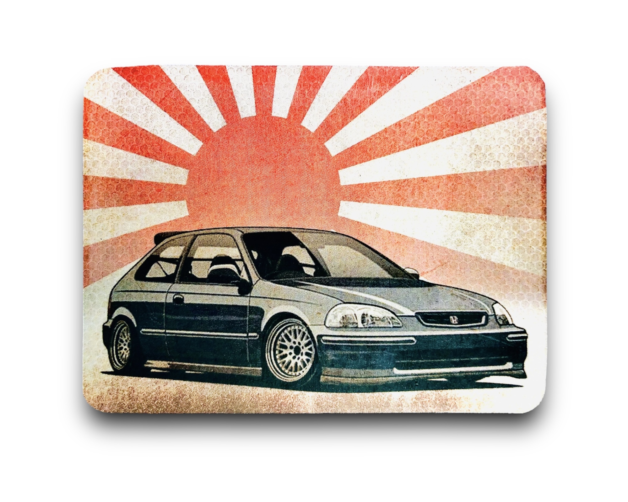 ZAPACH SAMOCHODOWY W KSZTAŁCIE KWADRATU Z MOTYWEM RAJDOWEGO MALUCHA IDENTYCZNY Z OBU STRON