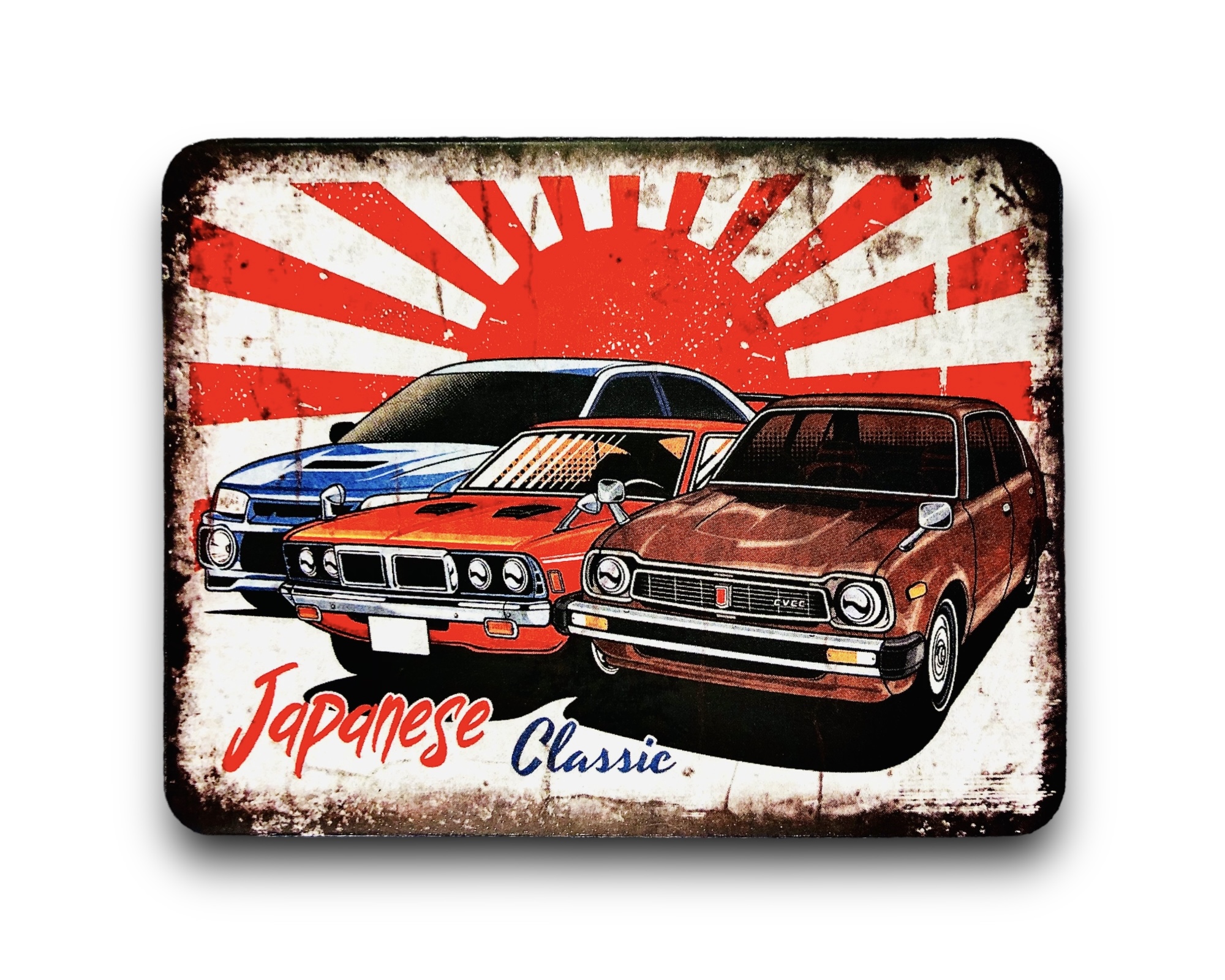 KUBEK W STYLU PRL, WYKONANY W CAŁOŚCI Z METALU Z MALUNKIEM DUŻEGO FIATA 125P
