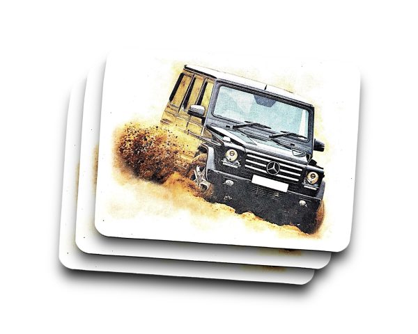 ZAPACH SAMOCHODOWY W KSZTAŁCIE KWADRATU Z MOTYWEM RAJDOWEGO MALUCHA IDENTYCZNY Z OBU STRON