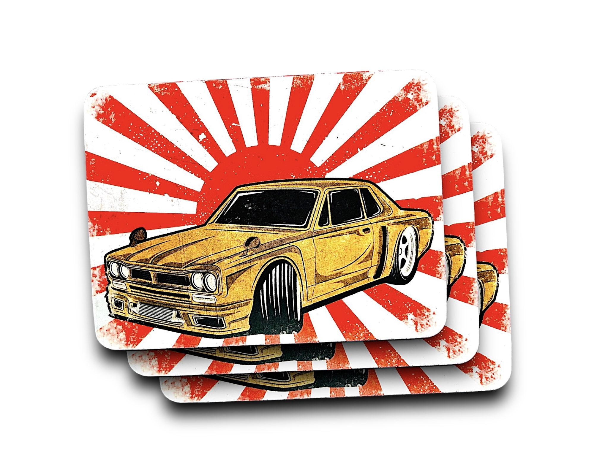 ZAPACH SAMOCHODOWY W KSZTAŁCIE KWADRATU Z MOTYWEM RAJDOWEGO MALUCHA IDENTYCZNY Z OBU STRON