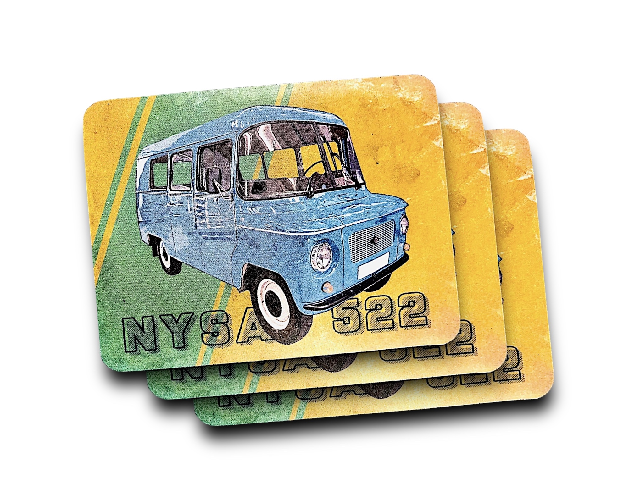 ZAPACH SAMOCHODOWY W KSZTAŁCIE KWADRATU Z MOTYWEM RAJDOWEGO MALUCHA IDENTYCZNY Z OBU STRON