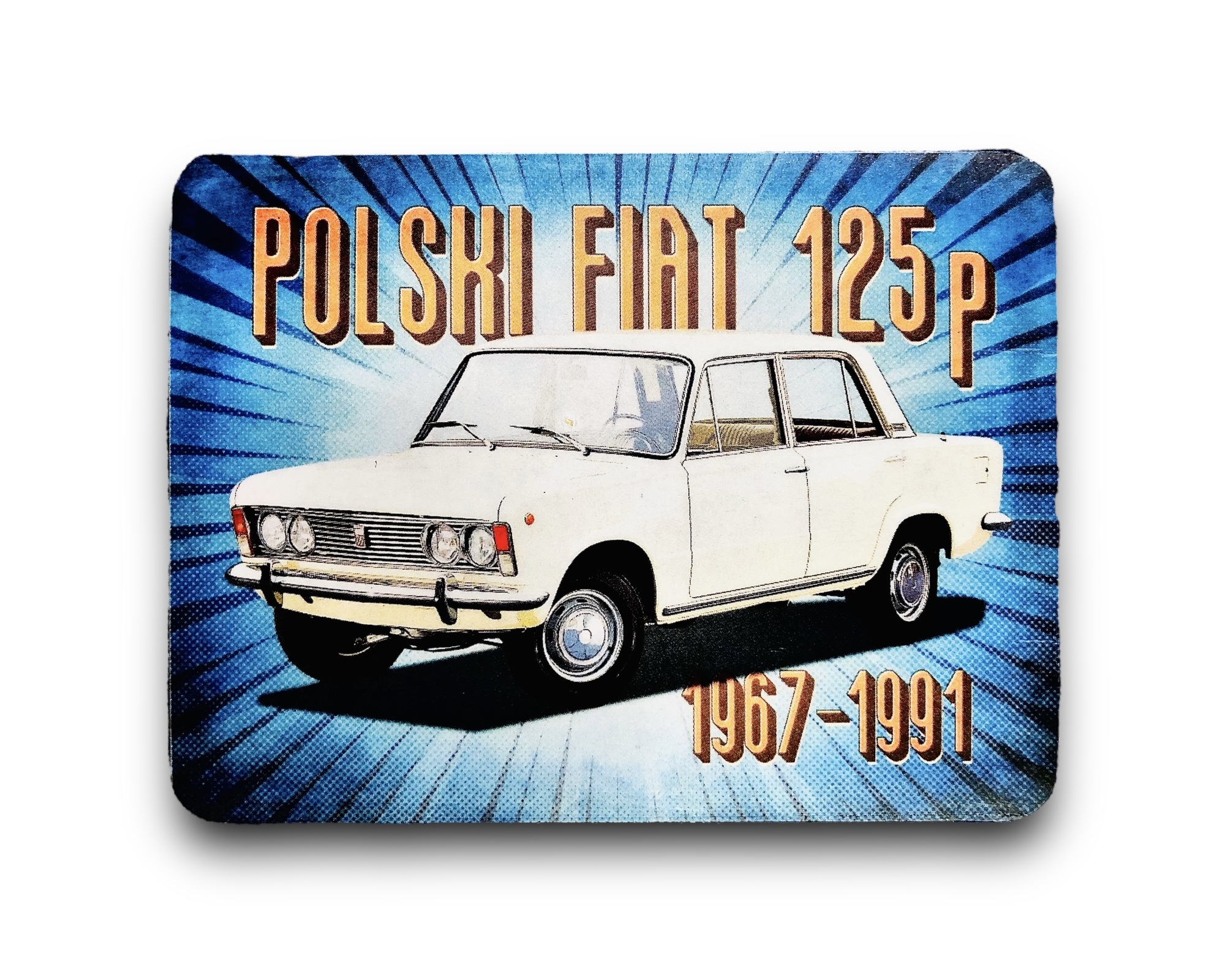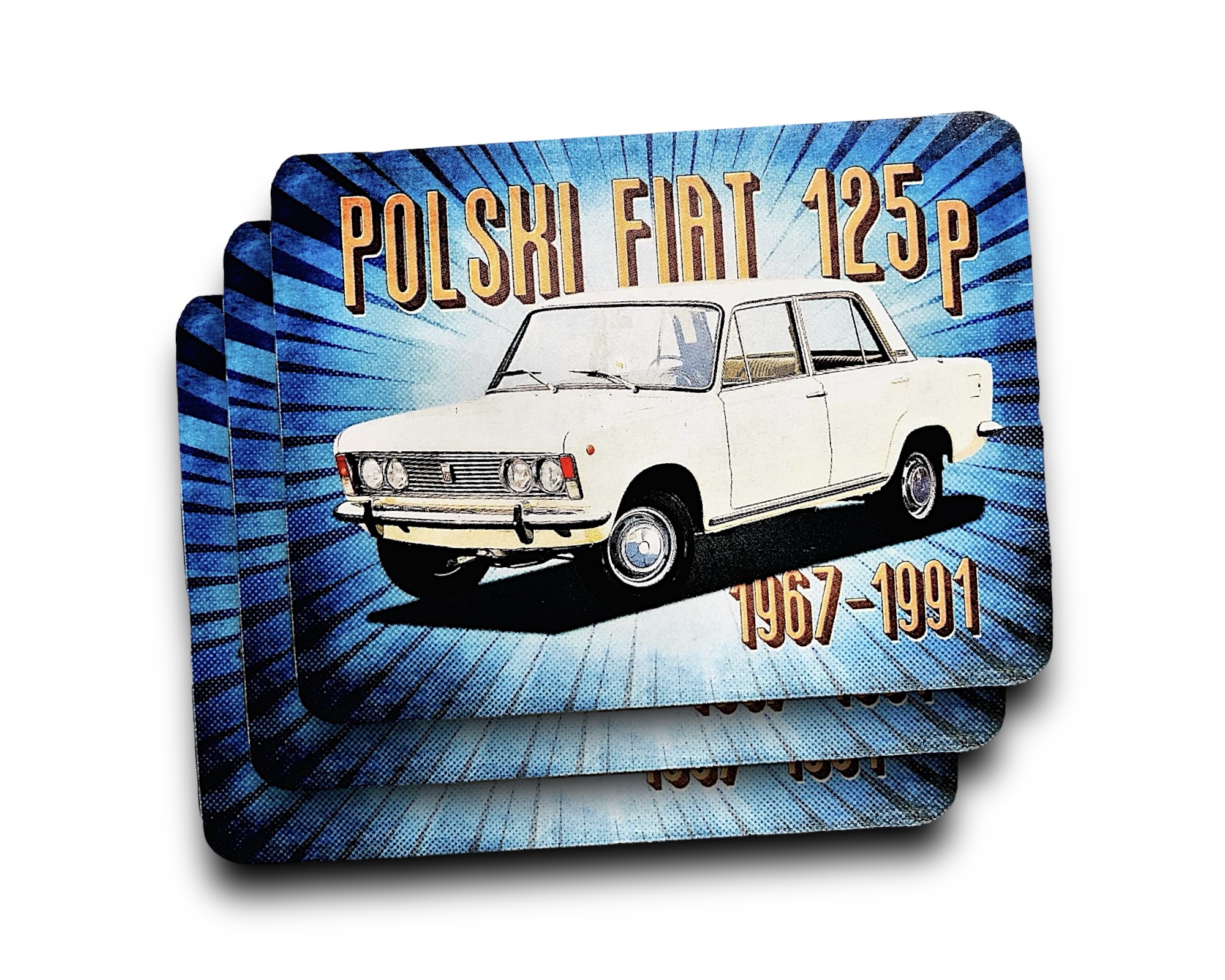ZAPACH SAMOCHODOWY W KSZTAŁCIE KWADRATU Z MOTYWEM RAJDOWEGO MALUCHA IDENTYCZNY Z OBU STRON