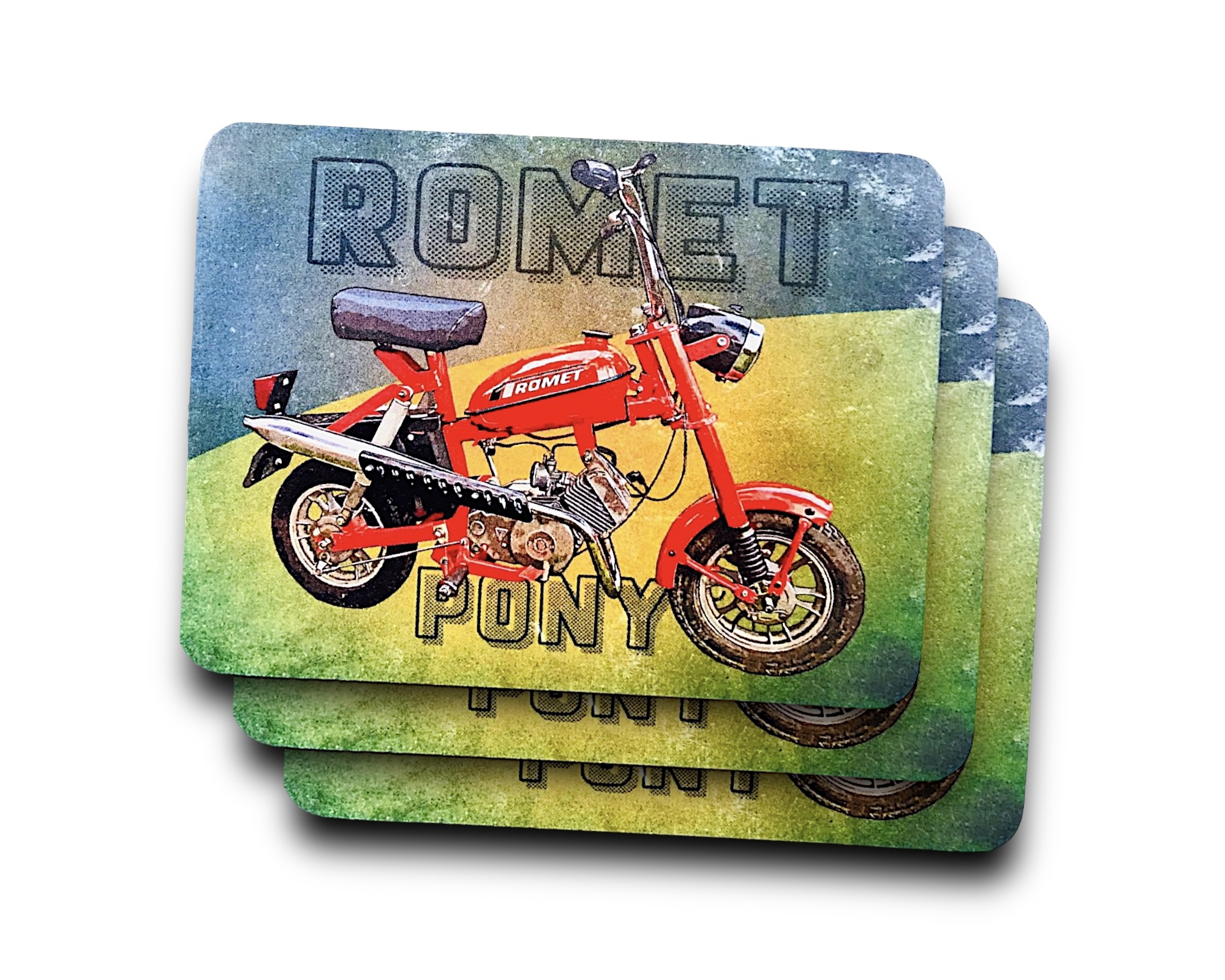 KUBEK W STYLU PRL, WYKONANY W CAŁOŚCI Z METALU Z MALUNKIEM CZERWONEGO POLONEZA