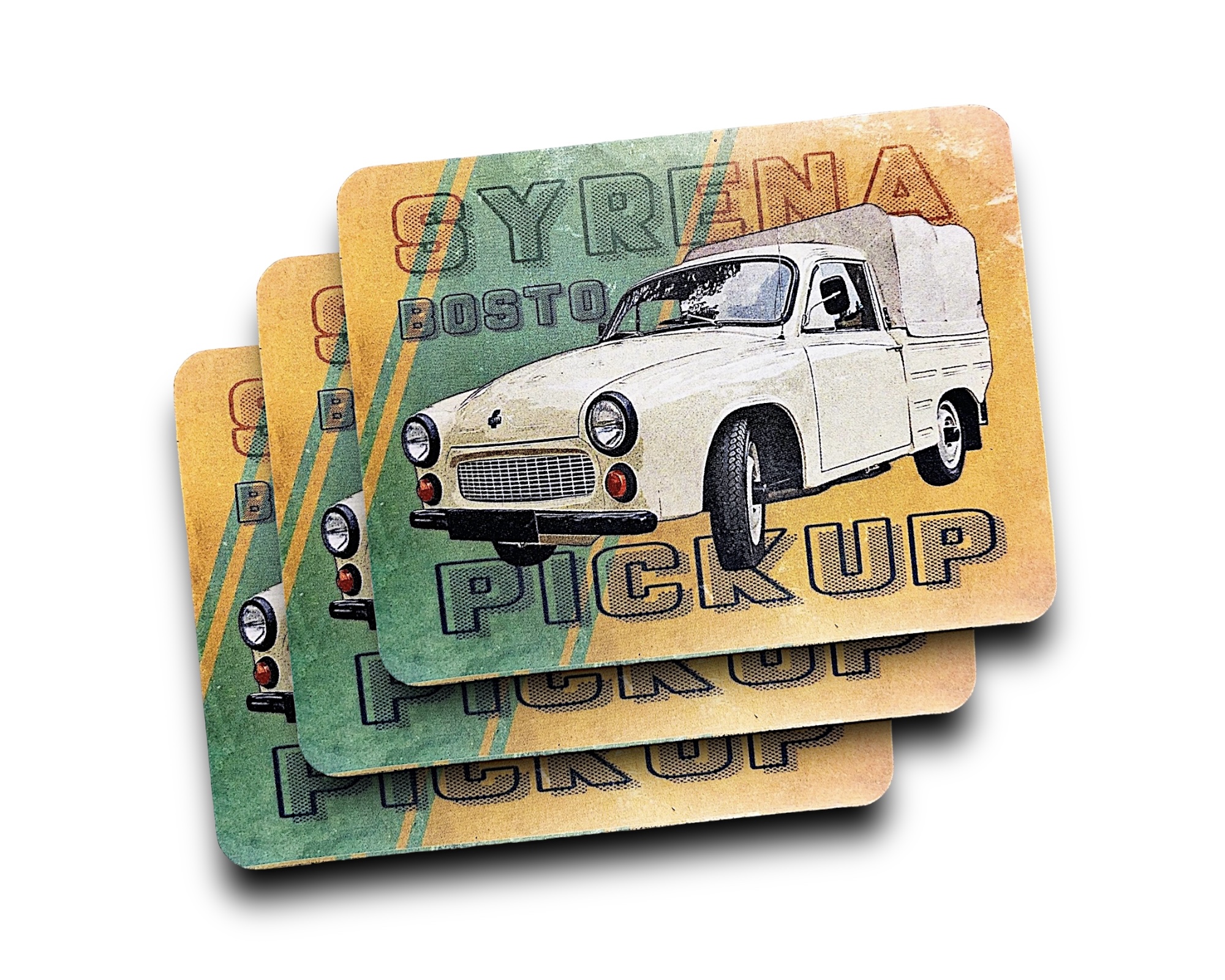 ZAPACH SAMOCHODOWY W KSZTAŁCIE KWADRATU Z MOTYWEM RAJDOWEGO MALUCHA IDENTYCZNY Z OBU STRON