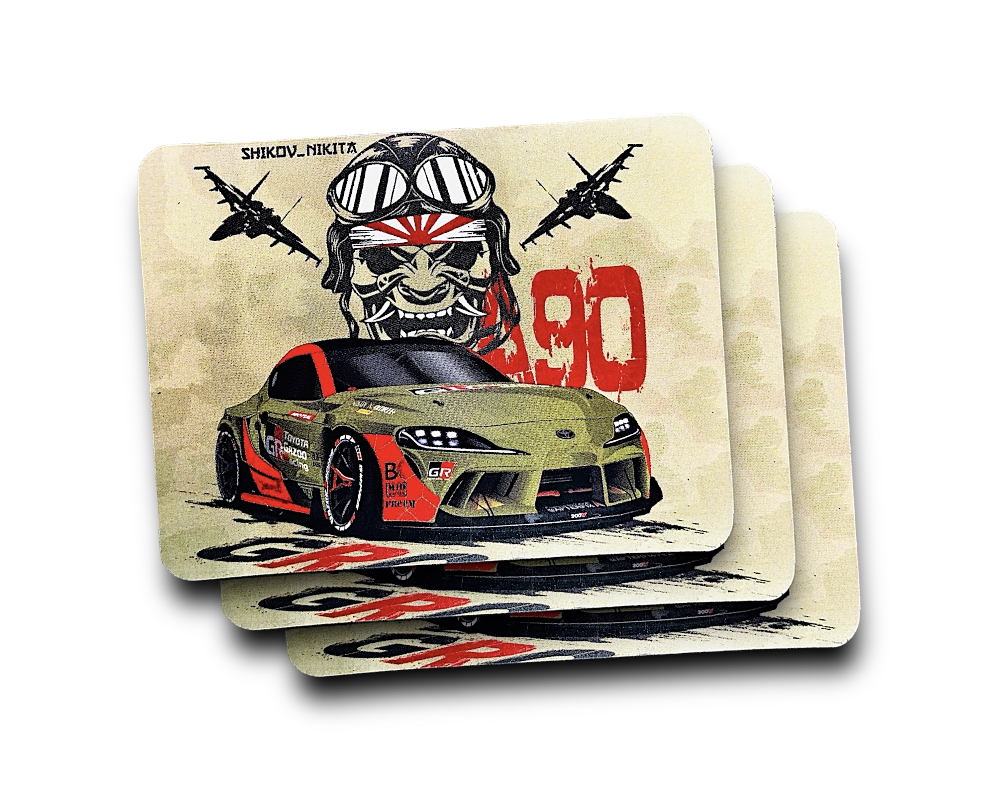 ZAPACH SAMOCHODOWY W KSZTAŁCIE KWADRATU Z MOTYWEM RAJDOWEGO MALUCHA IDENTYCZNY Z OBU STRON