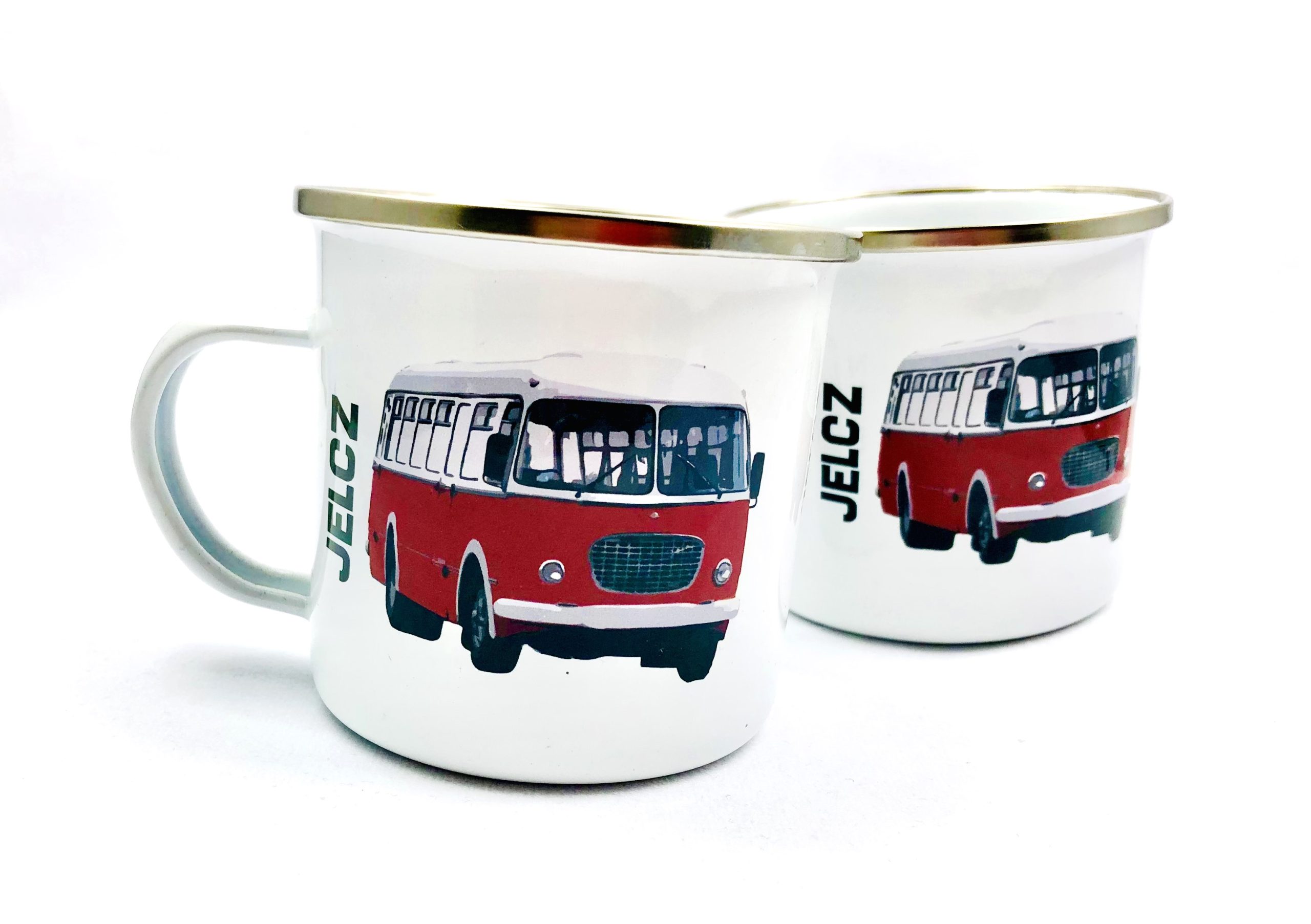 KUBEK W STYLU PRL, WYKONANY W CAŁOŚCI Z METALU Z MALUNKIEM CLASSIC MERC