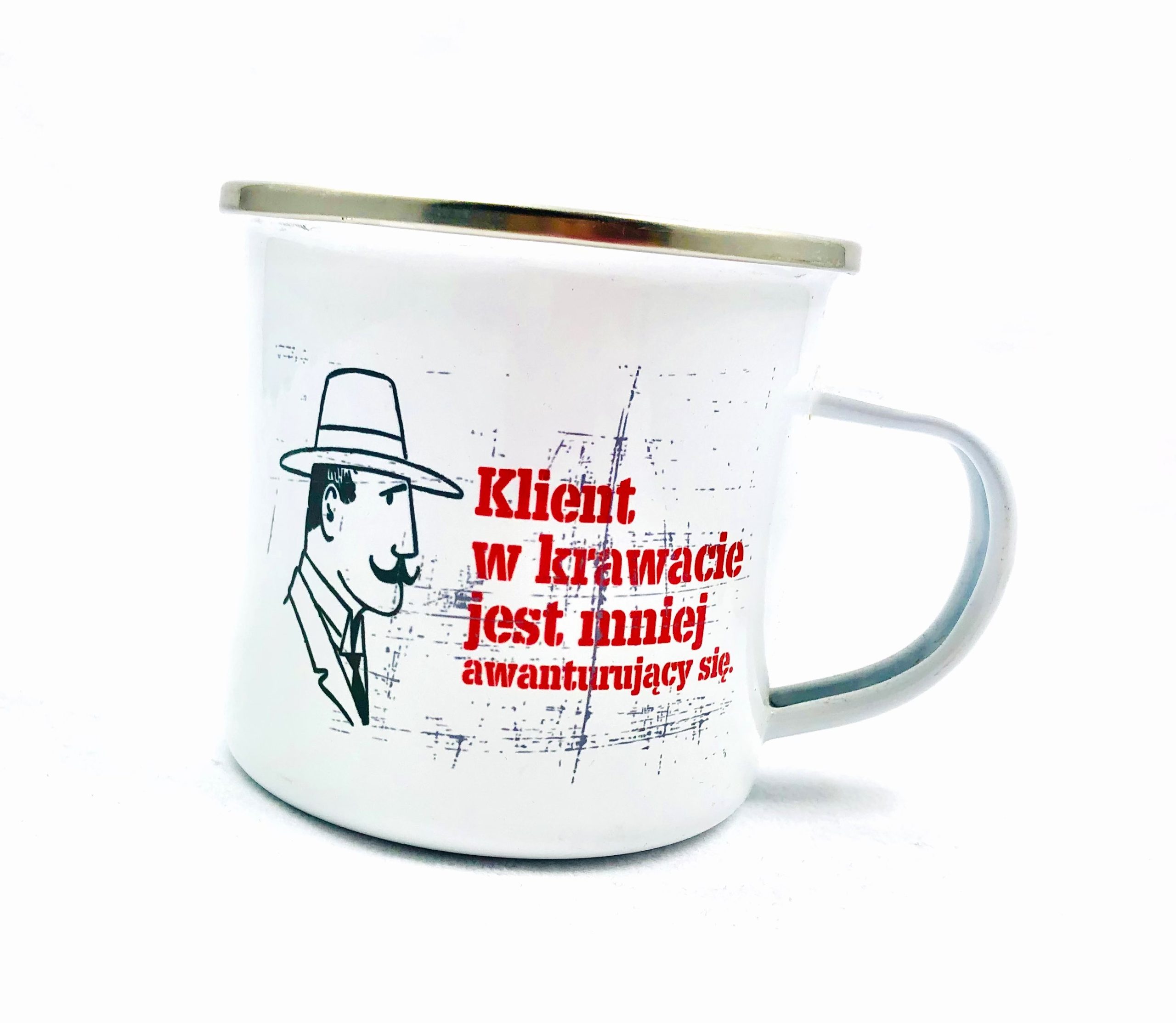 METALOWY RETRO KUBEK – KLIENT W KRAWACIE JEST MNIEJ AWANTURUJĄCY SIĘ