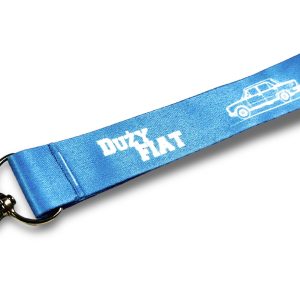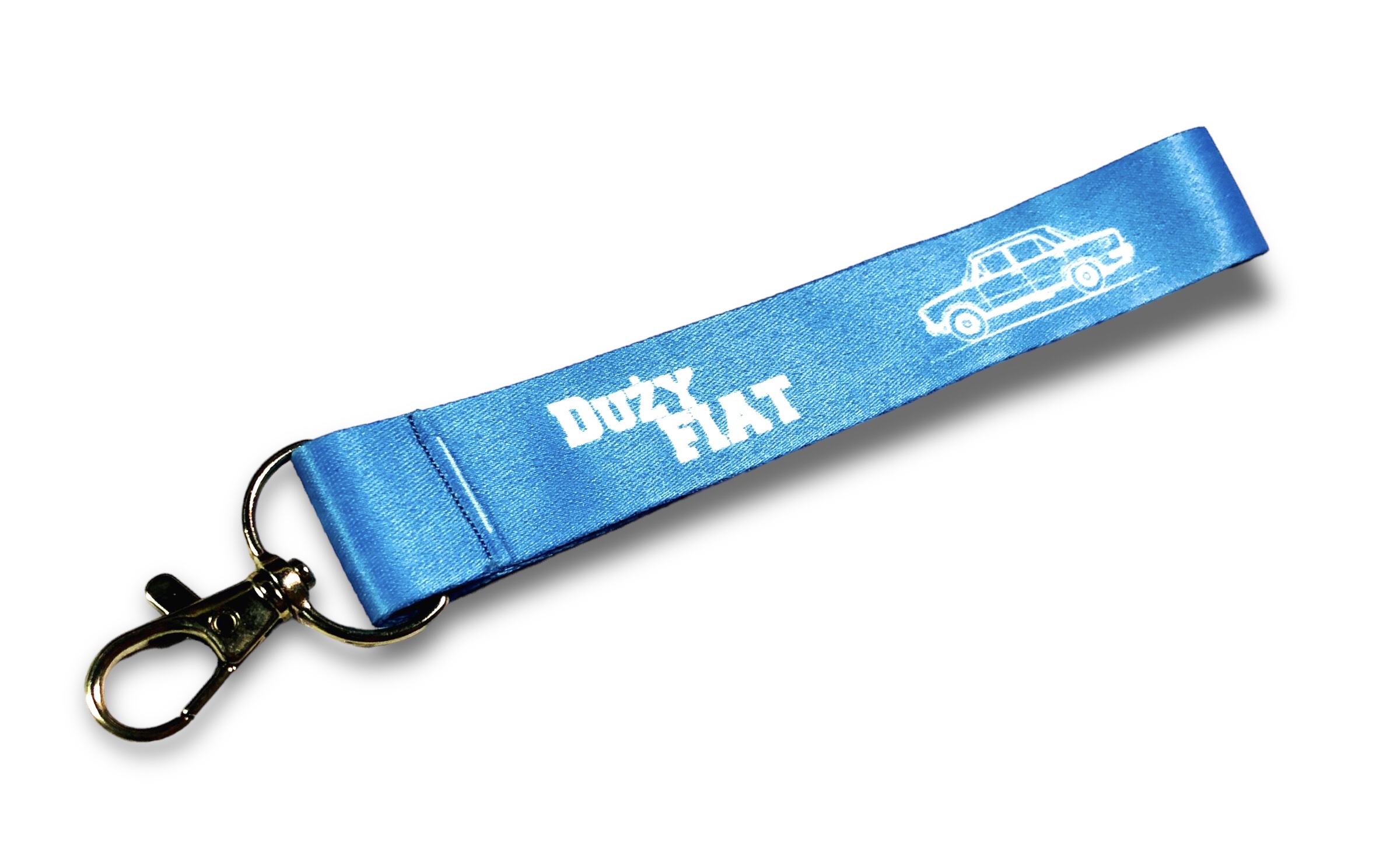 WYTRZYMAŁA SMYCZ DO KLUCZY Z OBRYSEM DUŻEGO FIATA W KOLORZE NIEBIESKIM. KOLEKCJA PRL. IDEALNA DLA FANATYKÓW POLSKIEJ RETRO MOTORYZACJI.