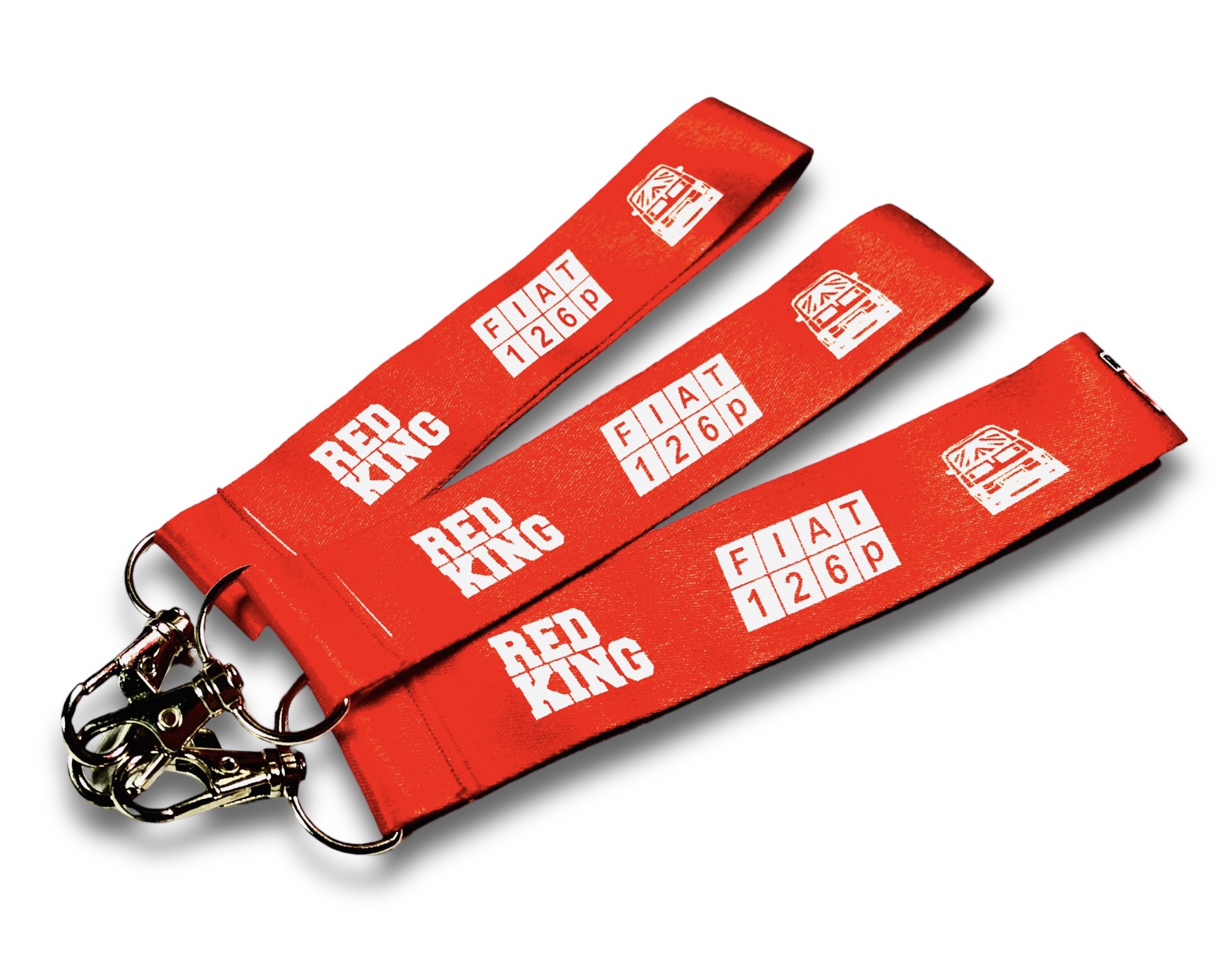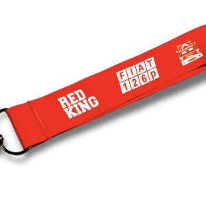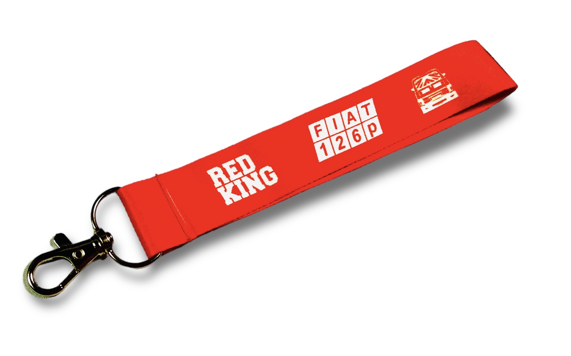 WYTRZYMAŁA SMYCZ DO KLUCZY Z OBRYSEM SŁYNNEGO MALUCHA – FIAT 126P „RED KING” W KOLORZE CZERWONYM. KOLEKCJA PRL. IDEALNA DLA FANATYKÓW POLSKIEJ RETRO MOTORYZACJI.