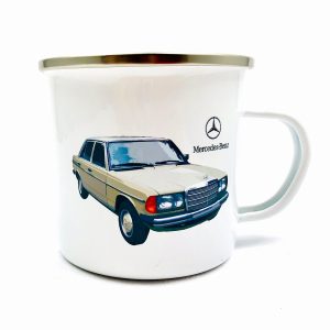 KUBEK W STYLU PRL, WYKONANY W CAŁOŚCI Z METALU Z MALUNKIEM CLASSIC MERC