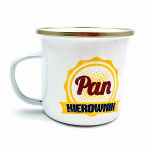 KUBEK W STYLU PRL, WYKONANY W CAŁOŚCI Z METALU Z NAPISEM PAN KIEROWNK BĄDŹ PANI KIEROWNICZKA
