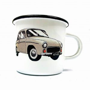 KUBEK W STYLU PRL, WYKONANY W CAŁOŚCI Z METALU Z MALUNKIEM DUŻEGO FIATA 125P