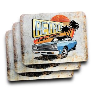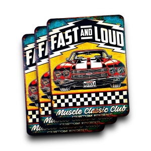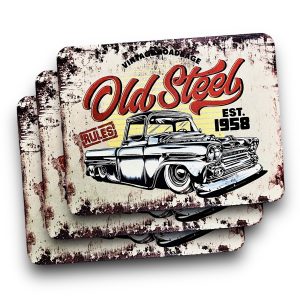 METALOWA TABLICZKA ŚCIENNA W STYLU RETRO, Z CZTEROMA OTWORAMI PRZY KAŻDYM ROGU, KTÓRE UMOŻLIWIAJĄ STABILNE PRZYTWIERDZENIE BLACHY DO ŚCIANY. POKRYTA...